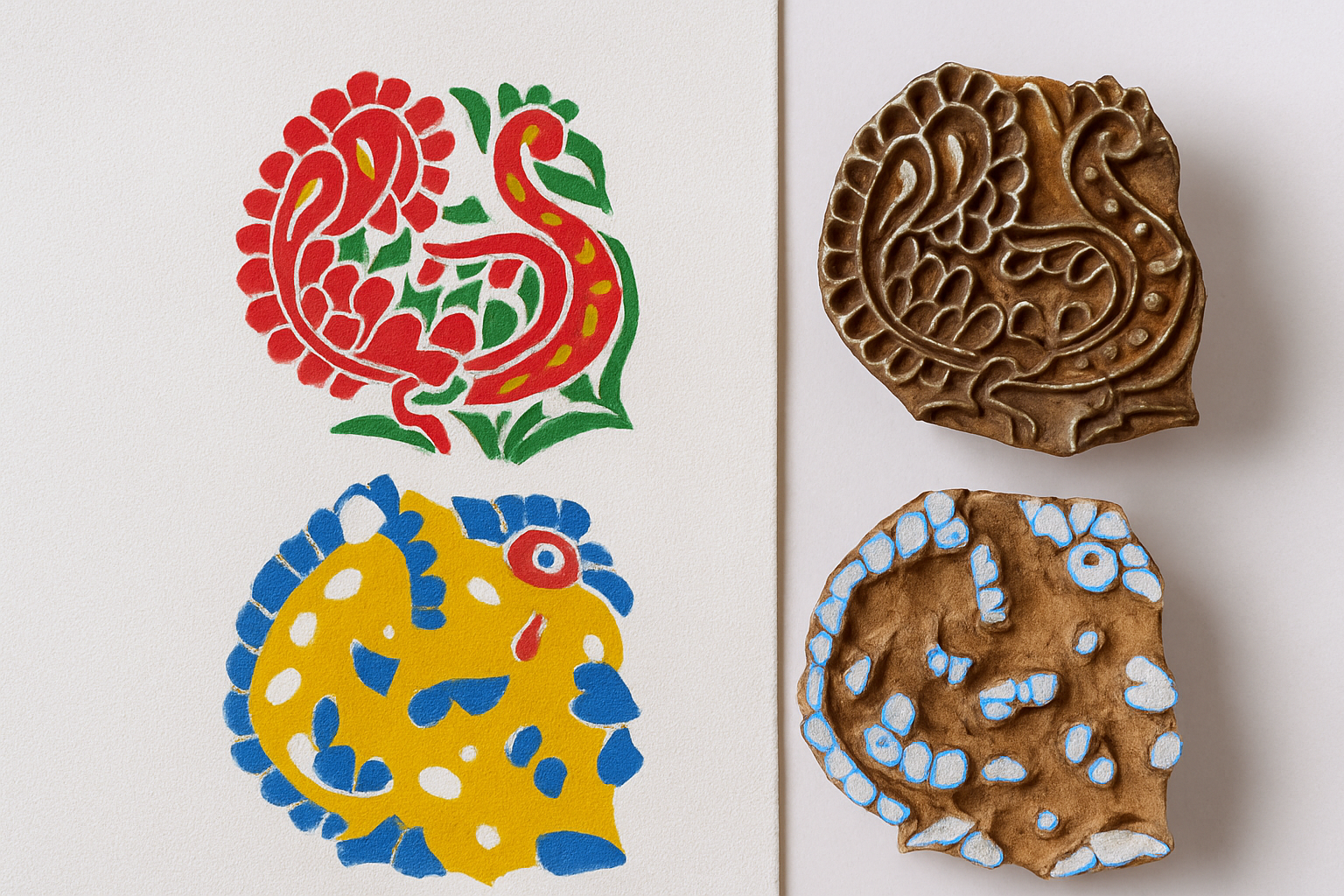 The first most important raw material of a block is the wood itself. The wood needs to be strong enough to survive the kind of wear that happens during printing. Teak wood is used for this reason.They procure blocks of teak and slice them into 1 inch width, and tools are used to make the surface smooth. The wood is cut to the approximate dimensions of the block which varies from 6 – 10 inches.