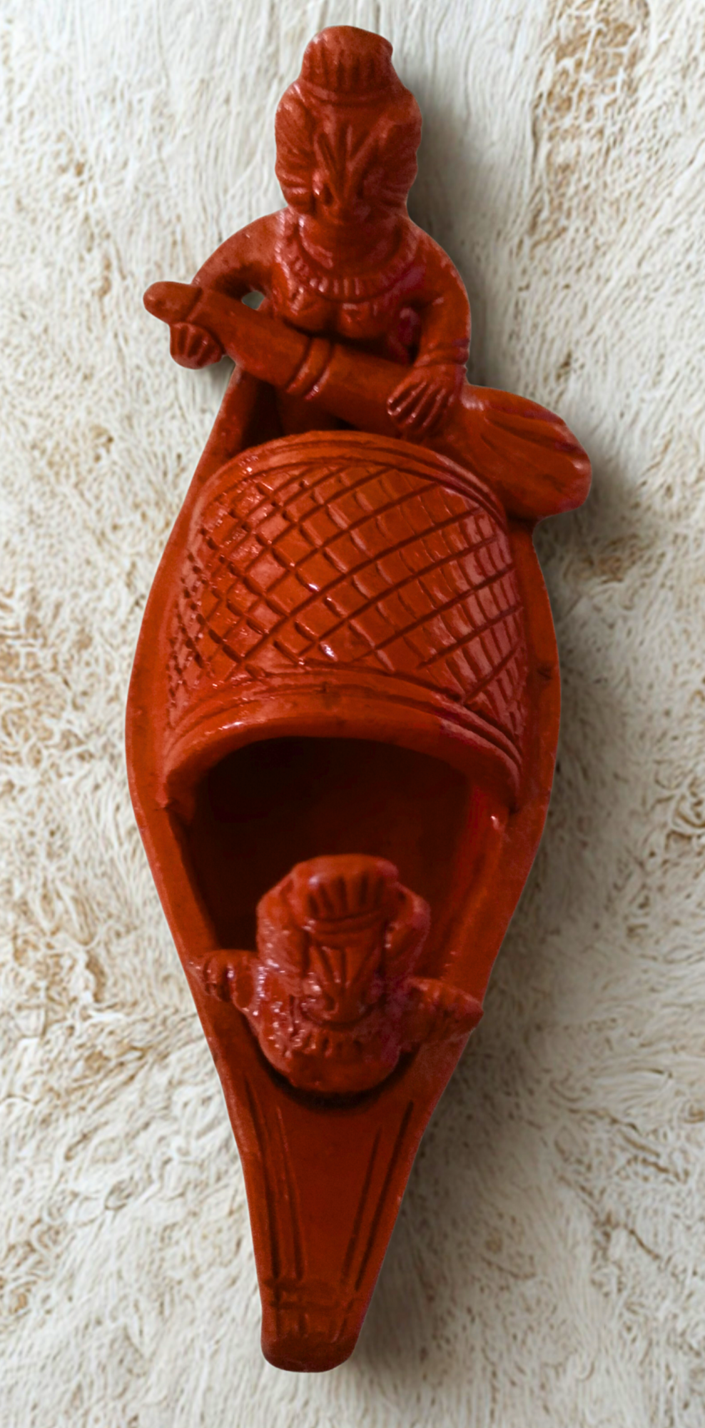 This handcrafted terracotta clay boat from Assam showcases traditional artisan skills and creative design. With its earthy tones and intricate detailing, the boat serves as a distinctive decorative piece that celebrates Assam’s enduring legacy of craftsmanship.