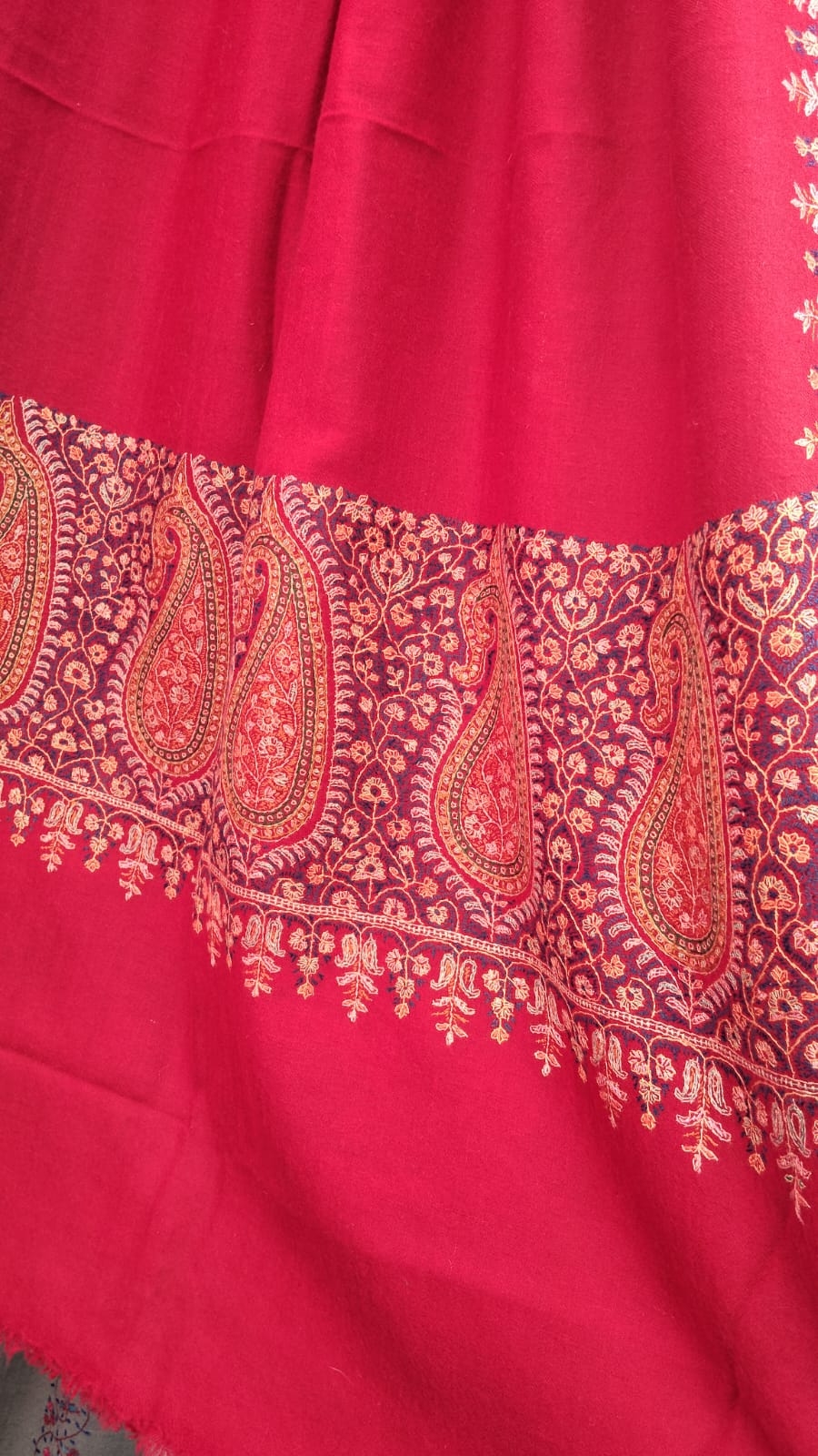 Pure Pashmina Neem Jama Shawl with Fine Sozni Work | Red