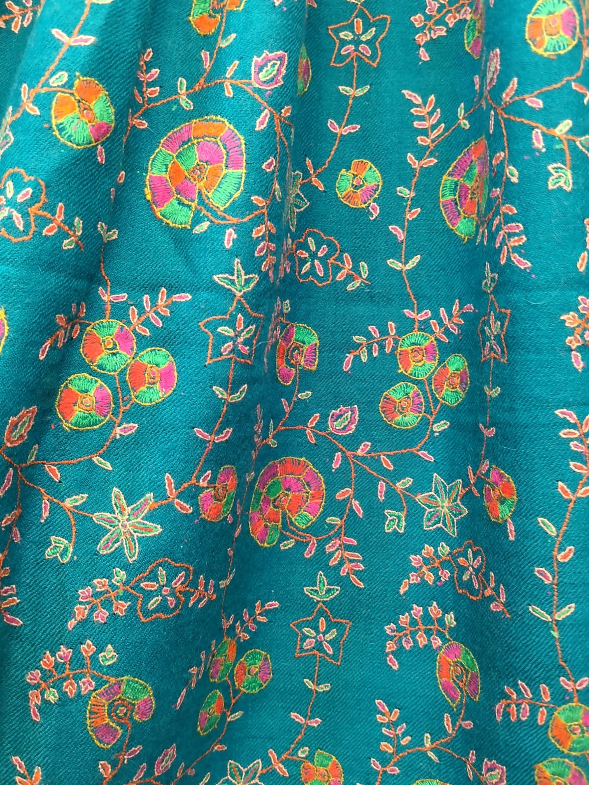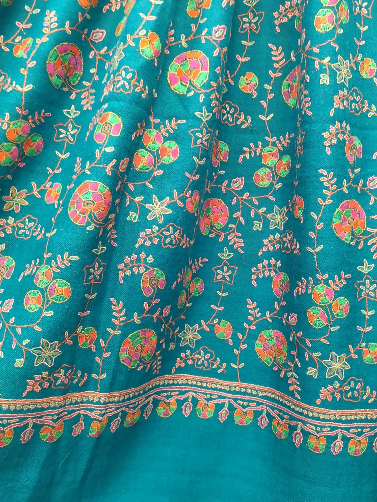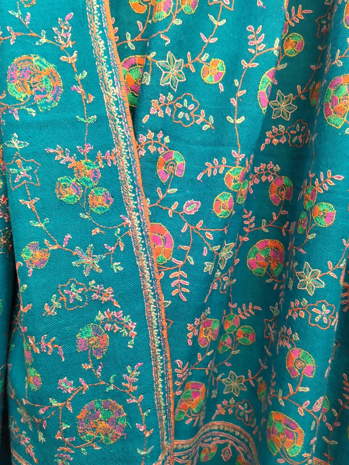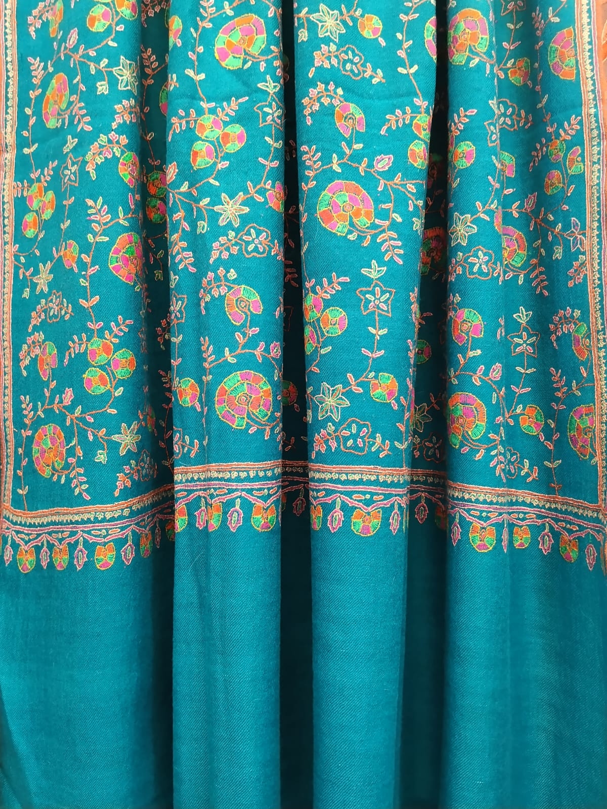 Pure Pashmina Neem Jama Shawl with Fine Sozni Work | Teal