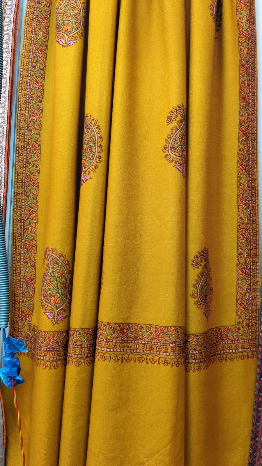 Pure Pashmina Neem Jama Shawl with Fine Sozni Work | Yellow
