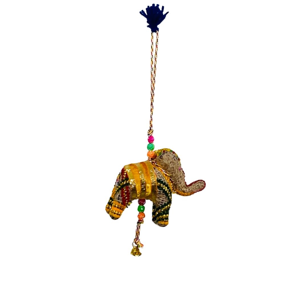 Crafted from eco-friendly jute, this charming elephant hanging features intricately designed mini elephants embellished with lace, beads, and traditional accents. Perfect for adding a rustic, ethnic touch to walls, balconies, or doorways.
