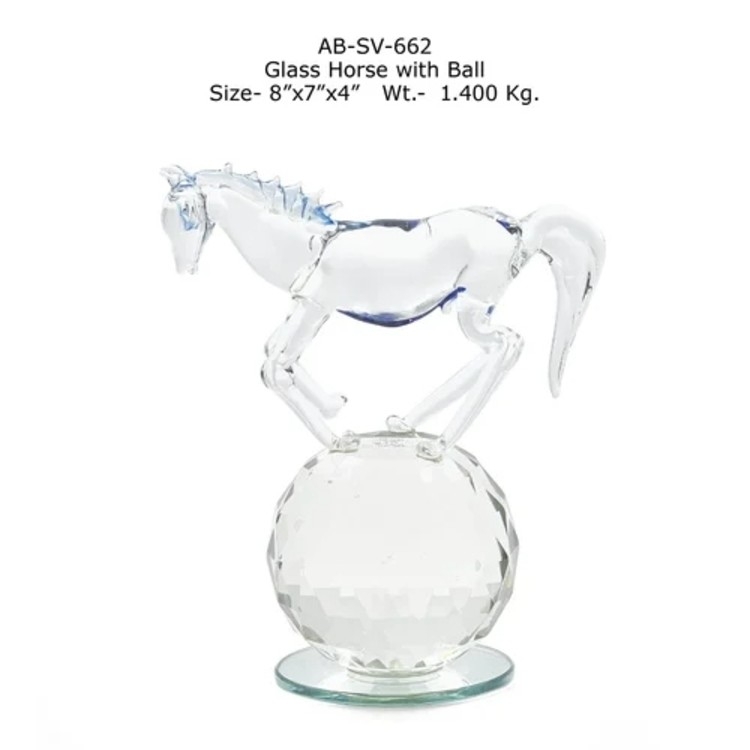 Made with crystal-clear smooth glass, this figurine features a stunning horse holding a ball, adding a majestic and artistic touch to your living room, office, or gifting collection.