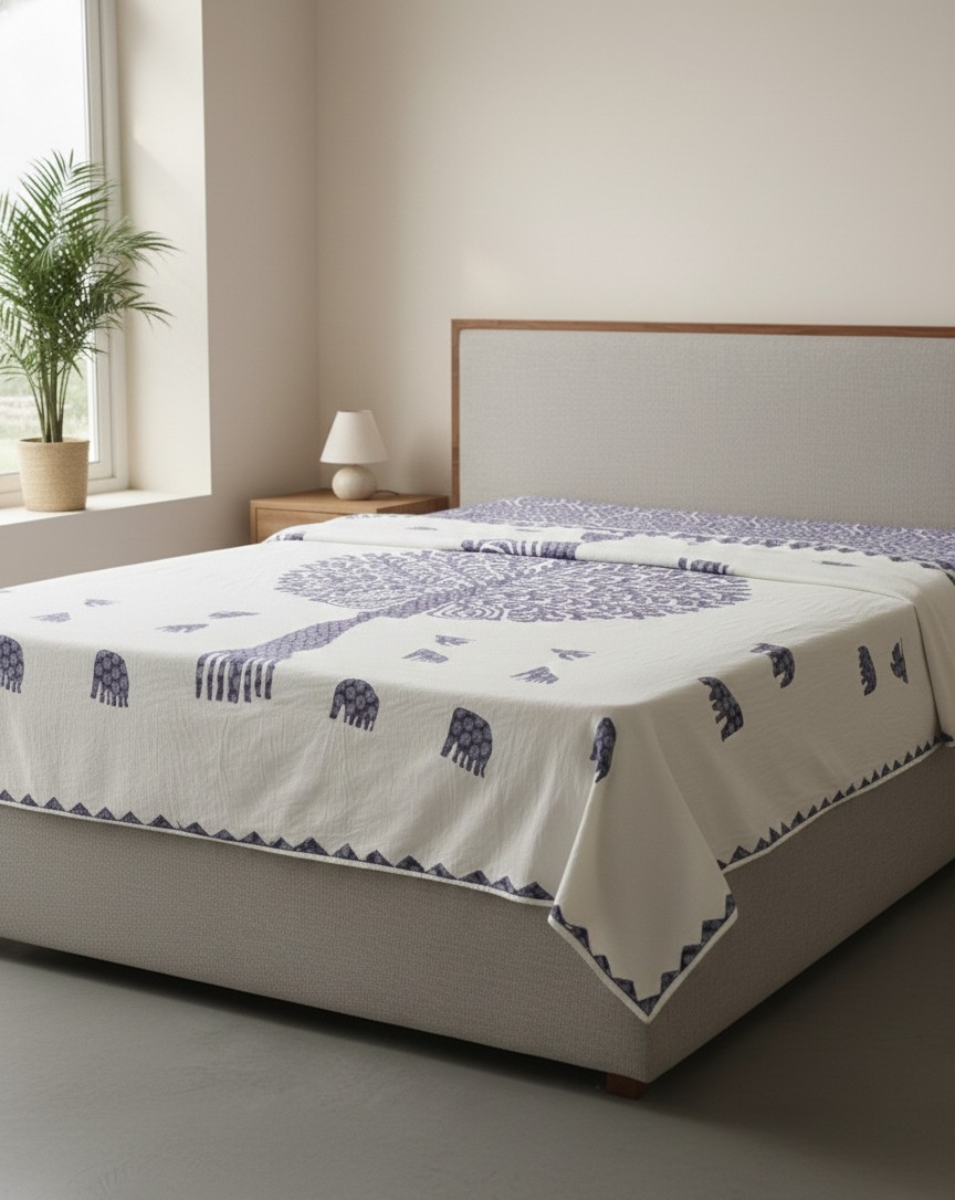 This Tree of Life printed bedsheet features a beautifully detailed motif that adds depth and elegance to bedroom décor. Crafted from comfortable fabric, it offers a soft feel and lasting durability. The thoughtfully sized 7 × 4 ft design is ideal for single beds, bringing style and calm to everyday living spaces.