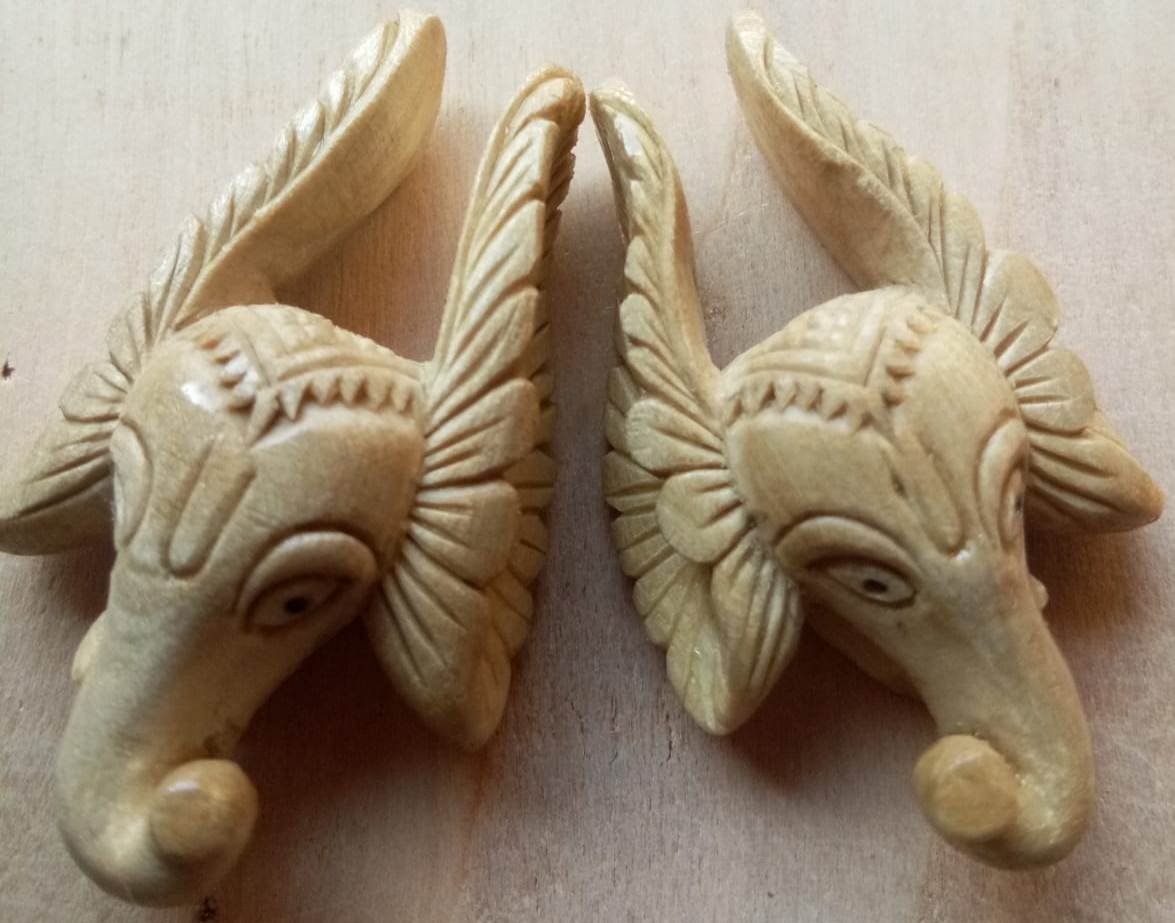 Tulsi "Ear Ring” in elephant shape by carving 100% made from Tulsi stem & root. Tulsi wood does produce by farming in Jait mathura. Jait village is origin of Tulsi production and “Tulsi Product” is being made since more than 30 years in Radhakund Mathura.