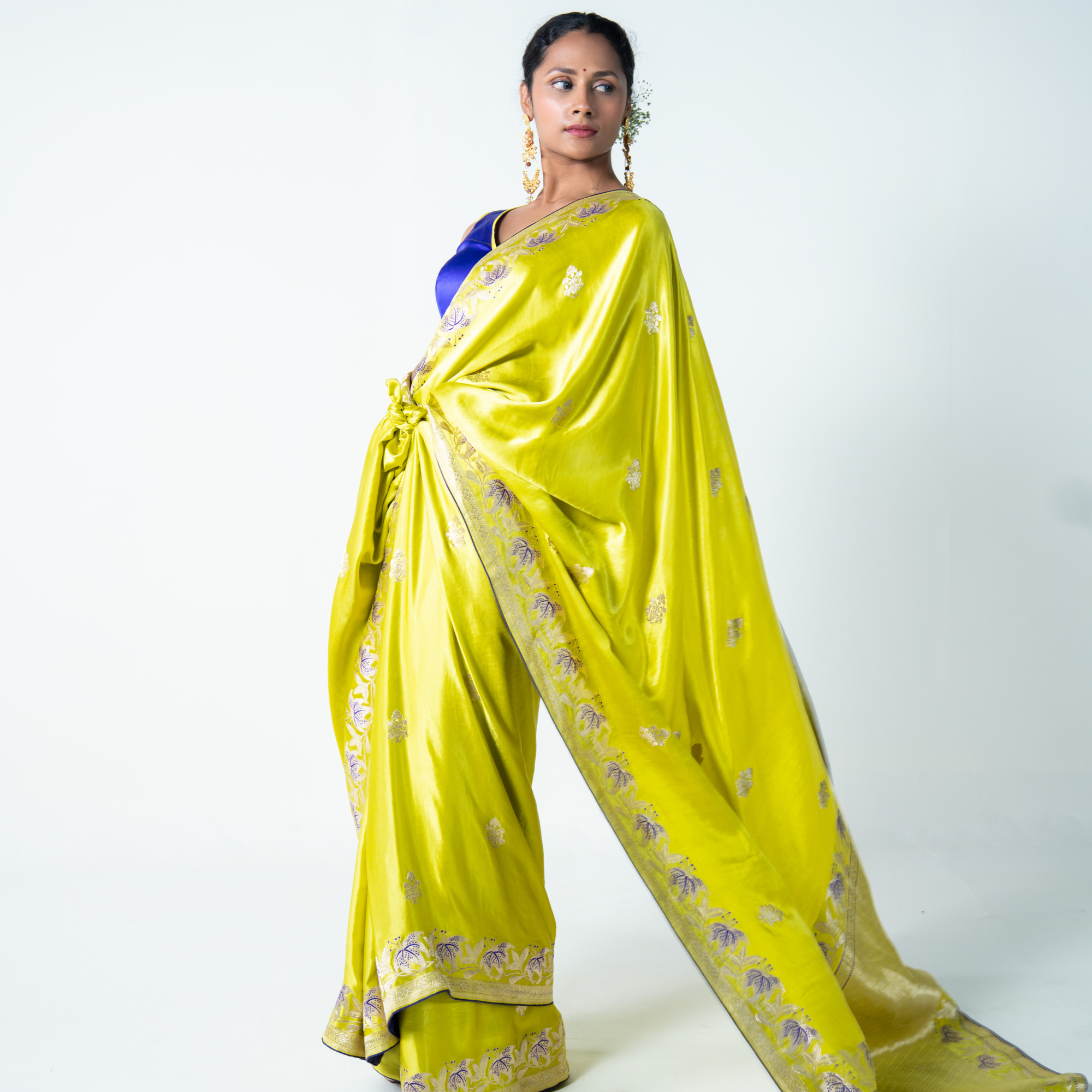 Pure Banarasi silk saree in a vibrant green hue