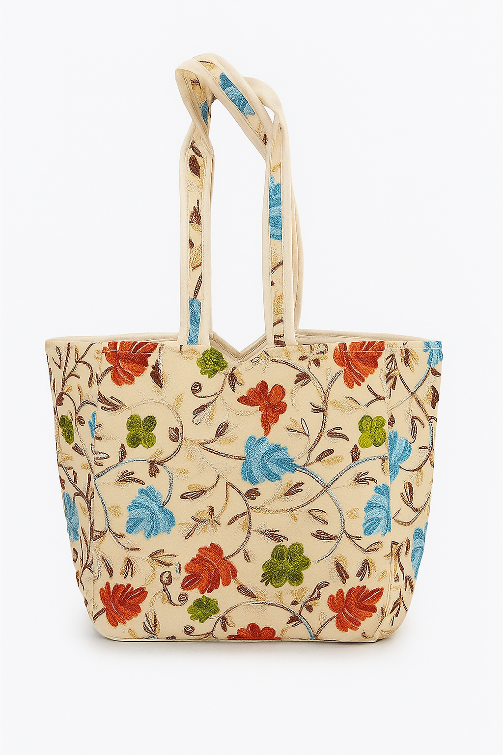 Add a touch of elegance to your everyday style with this beautifully handcrafted Kashmiri Velvet Embroidered Bag. Made by skilled Indian artisans, this bag features vibrant floral embroidery with intricate threadwork inspired by traditional Kashmiri art. The soft velvet material gives it a luxurious feel, while the spacious design makes it perfect for daily use, shopping, travel, or gifting.