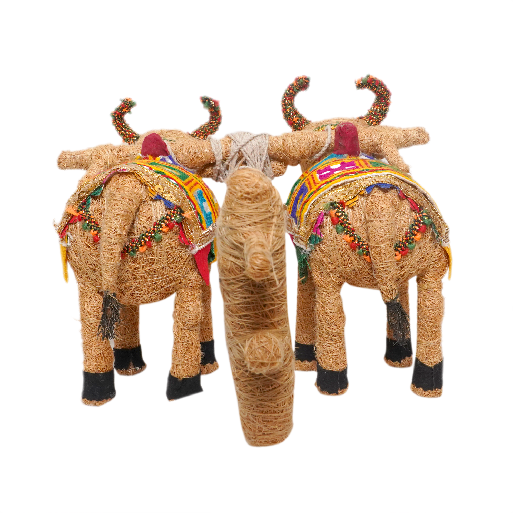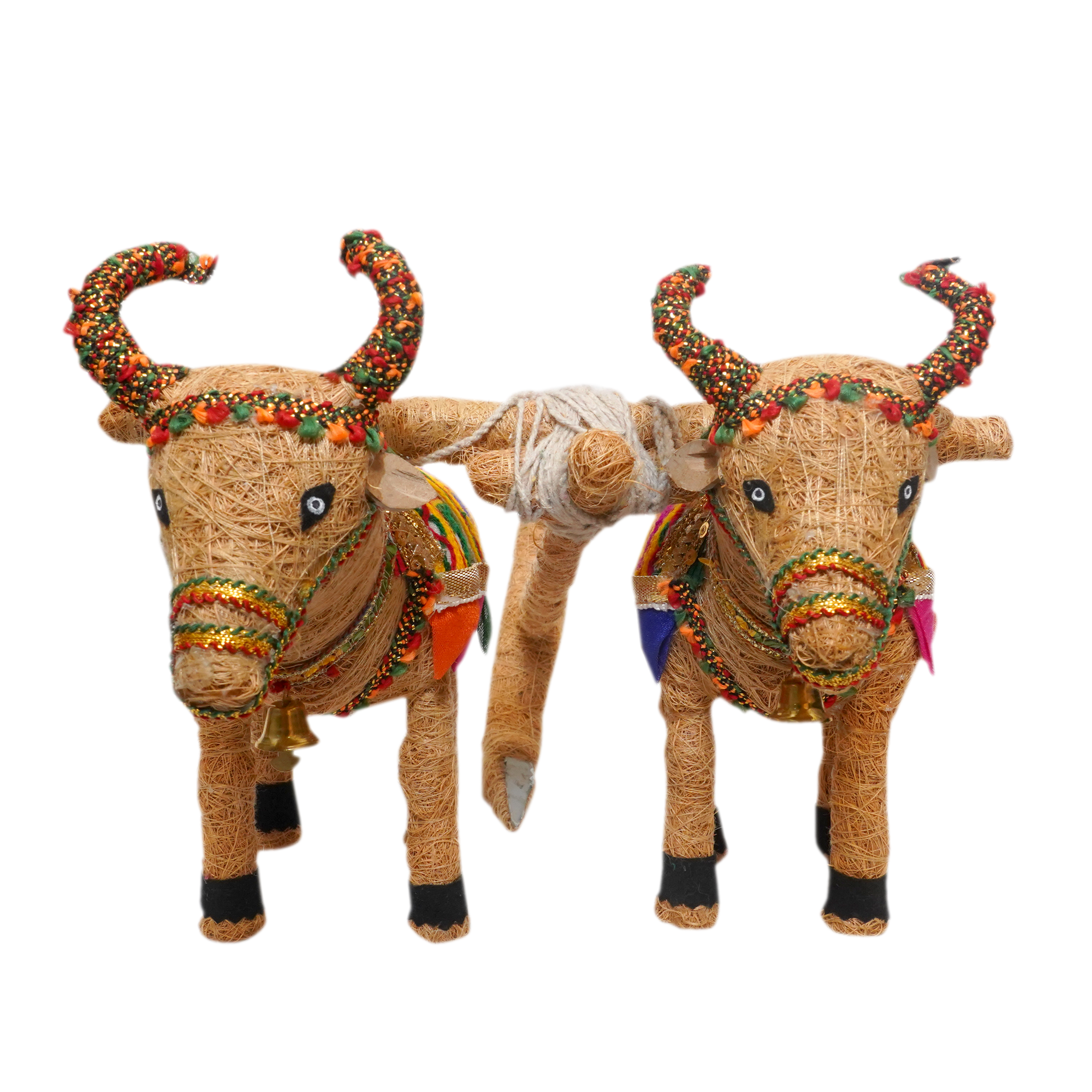 Handcrafted weed grass bullock cart showpiece with traditional design