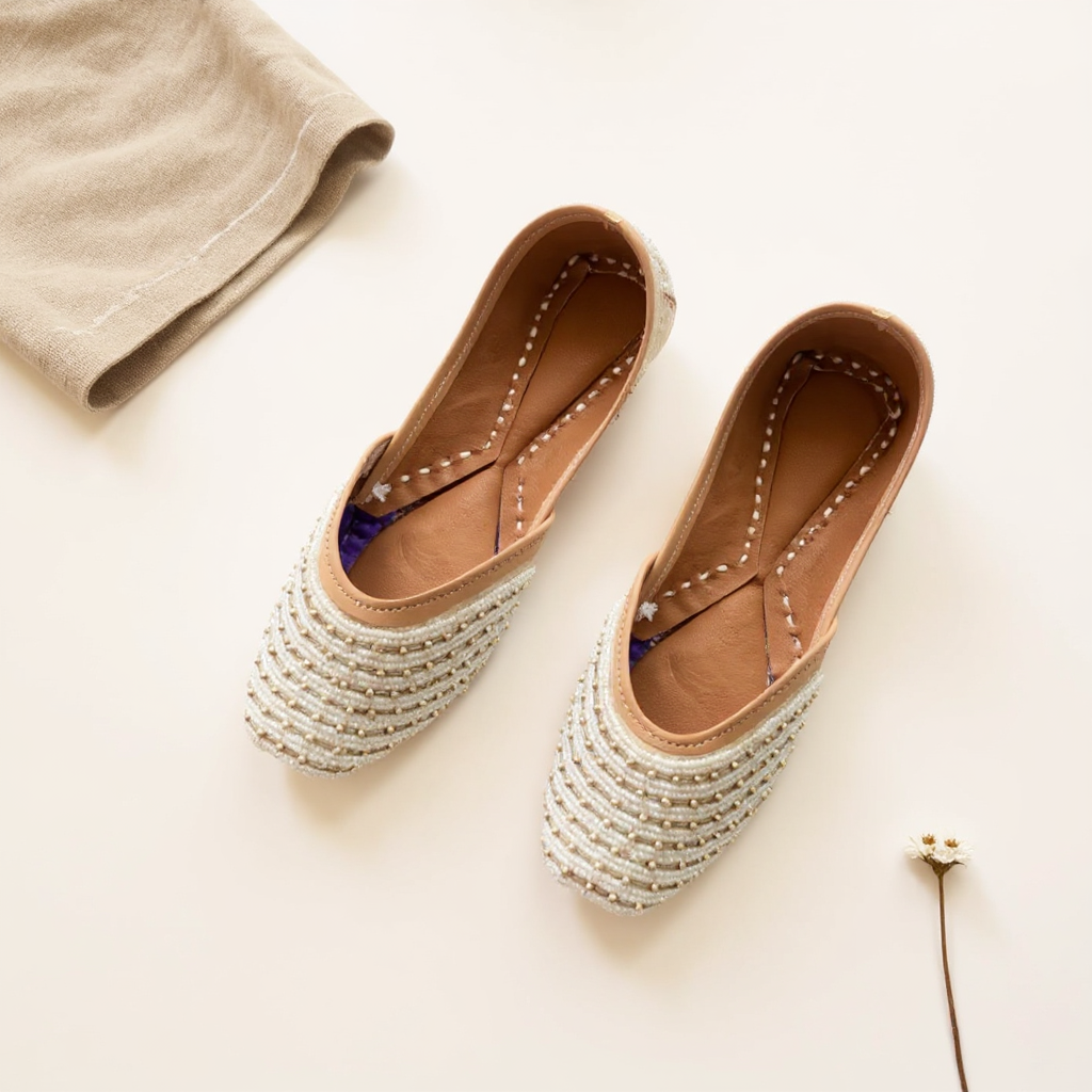 White color Pure Leather Punjabi Jutti for women and Girls special for party, wedding and casual use.