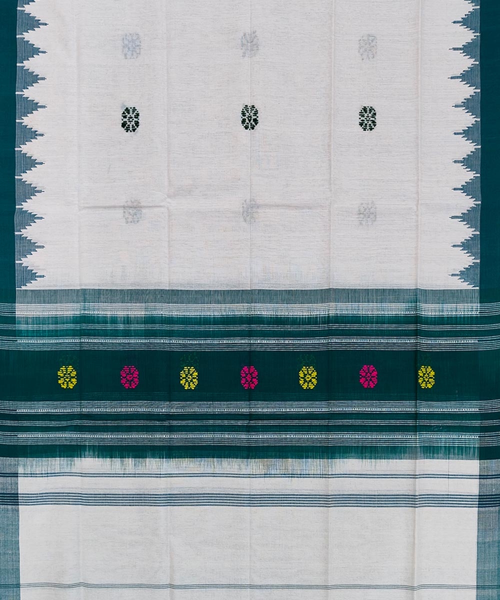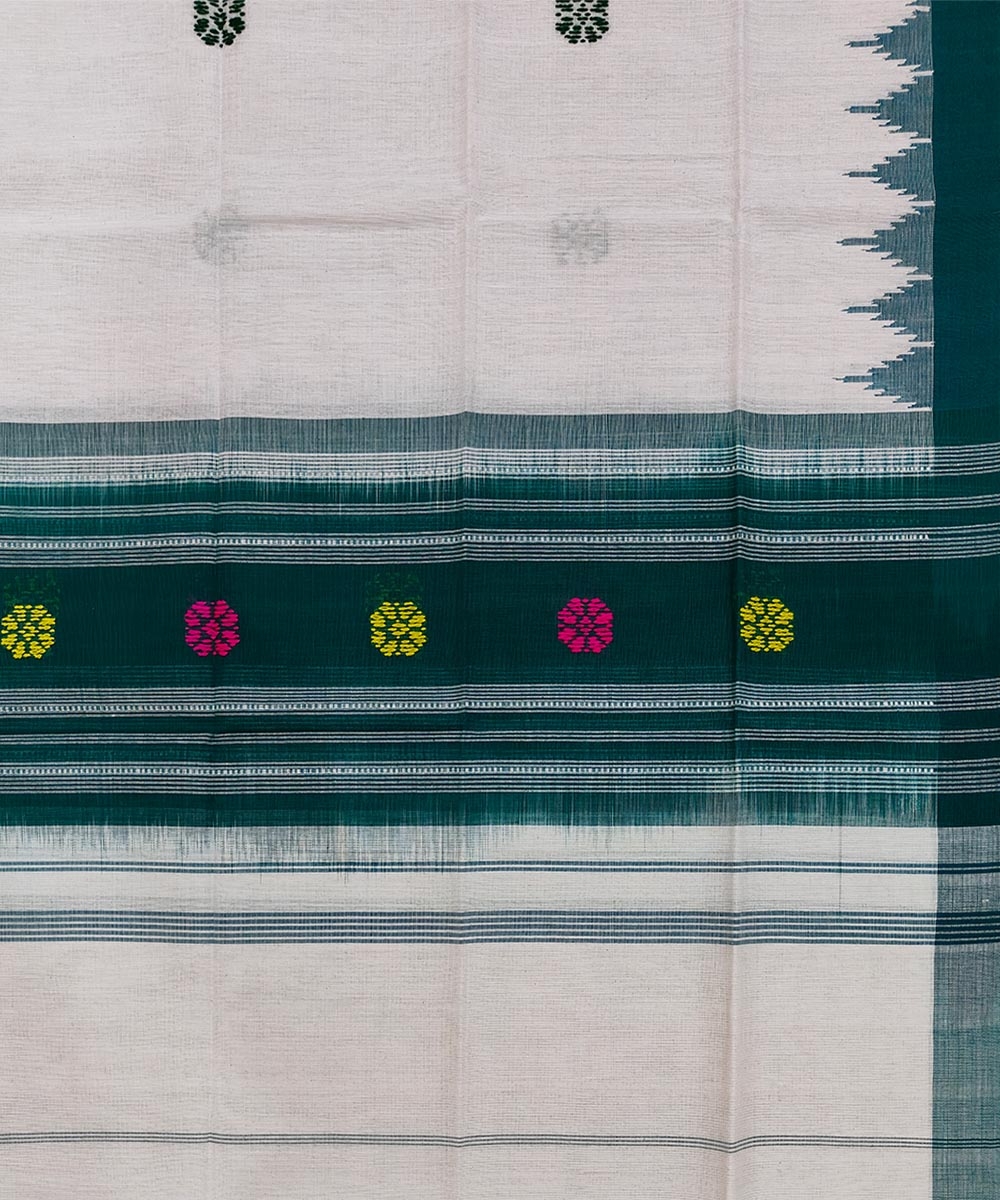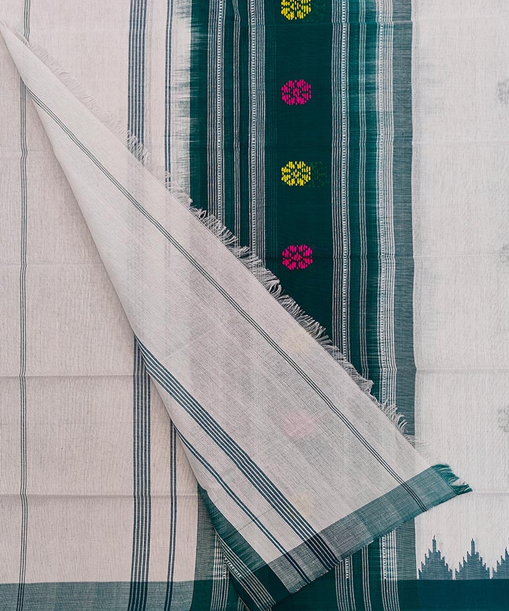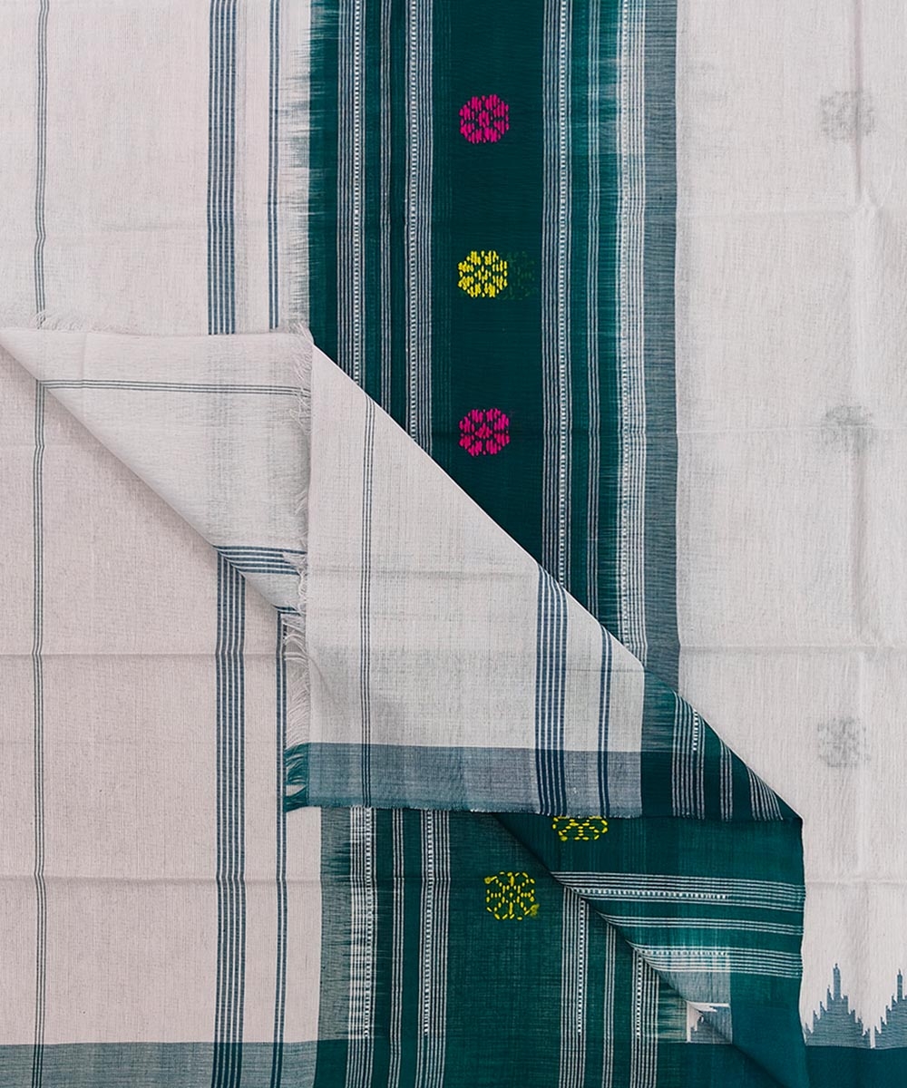 White Green Sambalpuri Handwoven Cotton Gamuchha SFCGAM1755