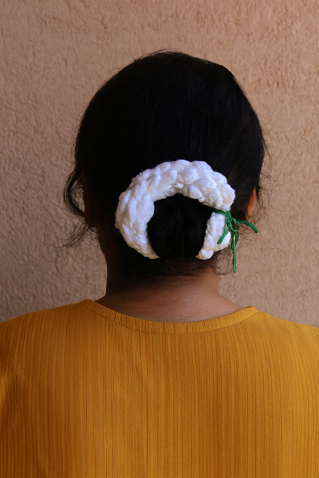 Perfect for weddings, festivals, or everyday styling, the gajra wraps gracefully around buns, braids, or ponytails, adding a touch of purity and heritage to your look. Lightweight and comfortable, it’s designed for all-day wear while honoring the artistry of crochet craftsmanship.
