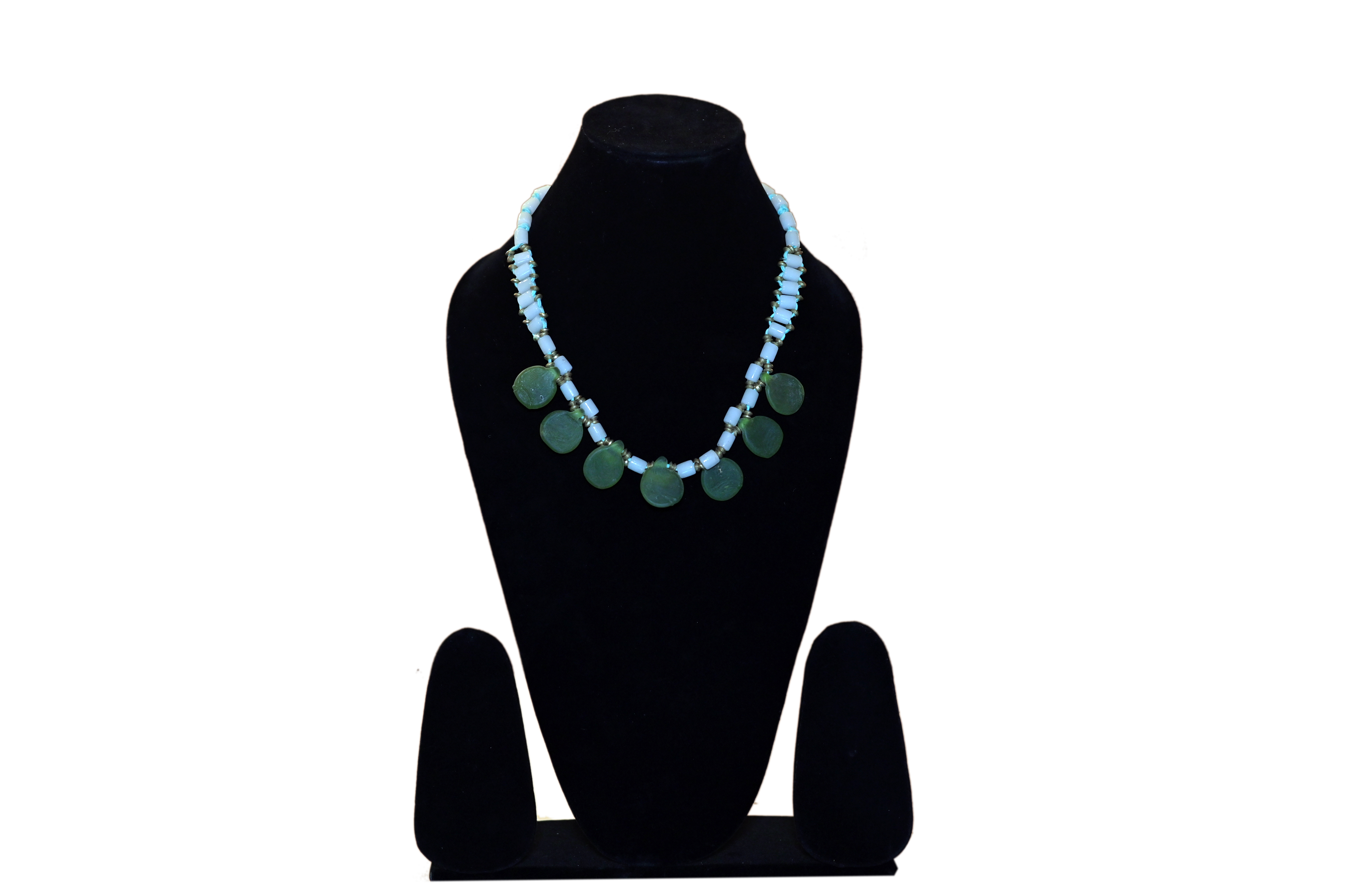 PARTY WEAR WHITE AND GREEN NACKLACE FOR WOMEN