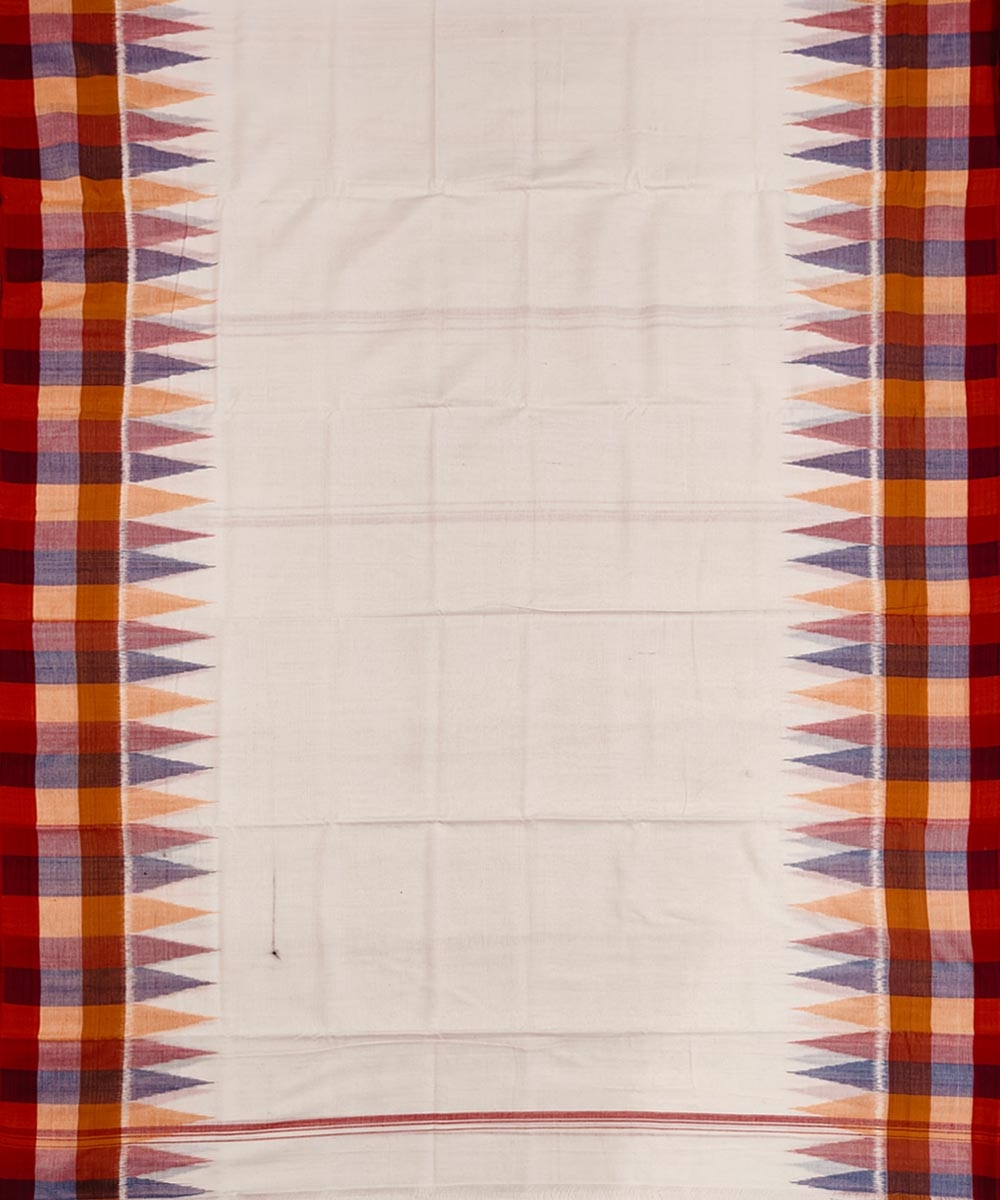White Sambalpuri Handwoven Ikat Cotton Dhoti Gamuchha SFSJOD1592