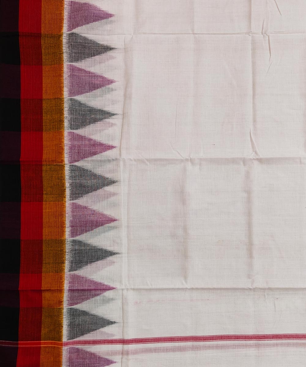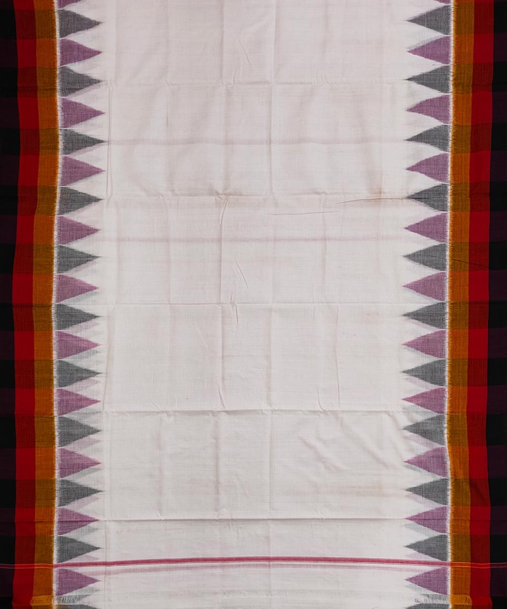 White Sambalpuri Handwoven Ikat Cotton Dhoti Gamuchha SFSJOD1593