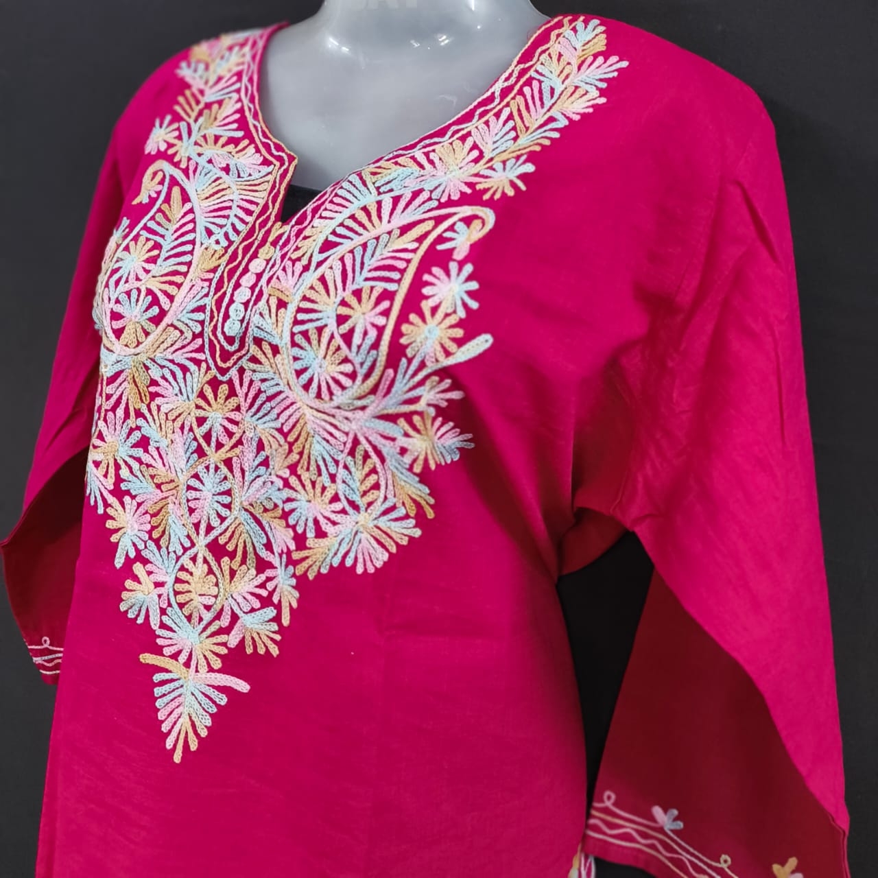 Embroidered Pure Cotton Straight Kurta for Women | Pink