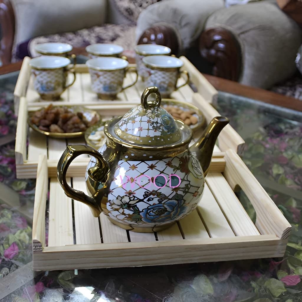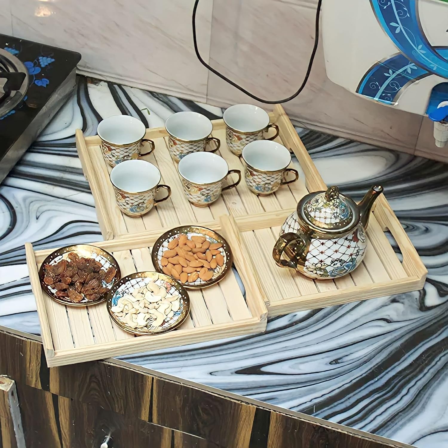 Durable & Lightweight: Our serving tray set, breakfast lunch dinner trays are made of natural Rosewood wood, adding a rustic farmhouse to any room. An ideal gift for a housewarming, birthday or anniversary parties. It comes in an attractive finish It is designed for everyday use and can be used as snack tray, drinks tray, kitchen tray, appetizer tray, nesting tray, home decor displays, party platter and tray Material Used- Sheesham Wood with natural finishing It can work as a cocktail coffee tea ottoman decorative tray for the table, an outdoor patio food drink serving tray, or as a home decoration.