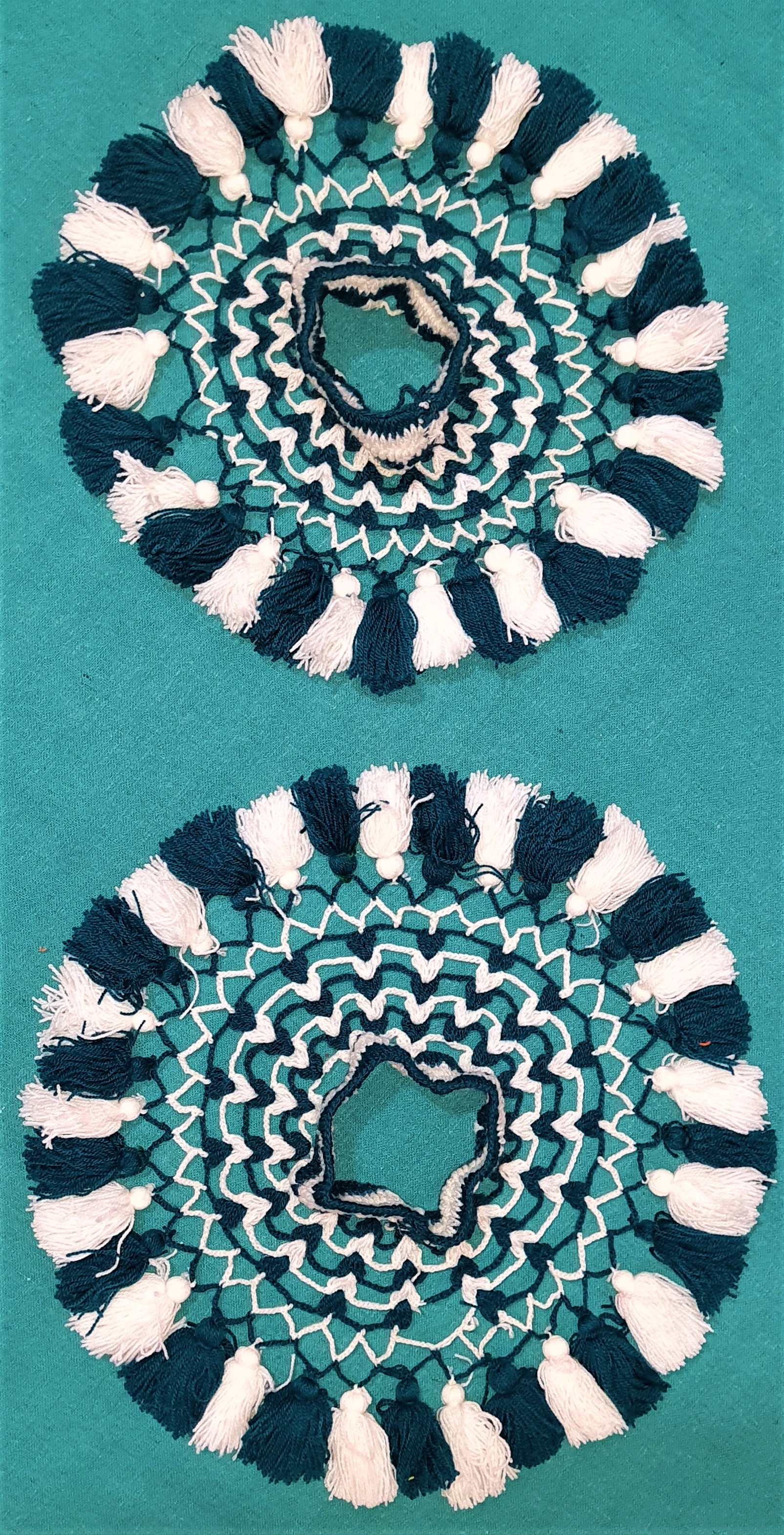 FRUIT COVER USED FOR COVER THE FRUIT BOWL . IT IS MED BY COLOURFUL WOOLEN THREADS .