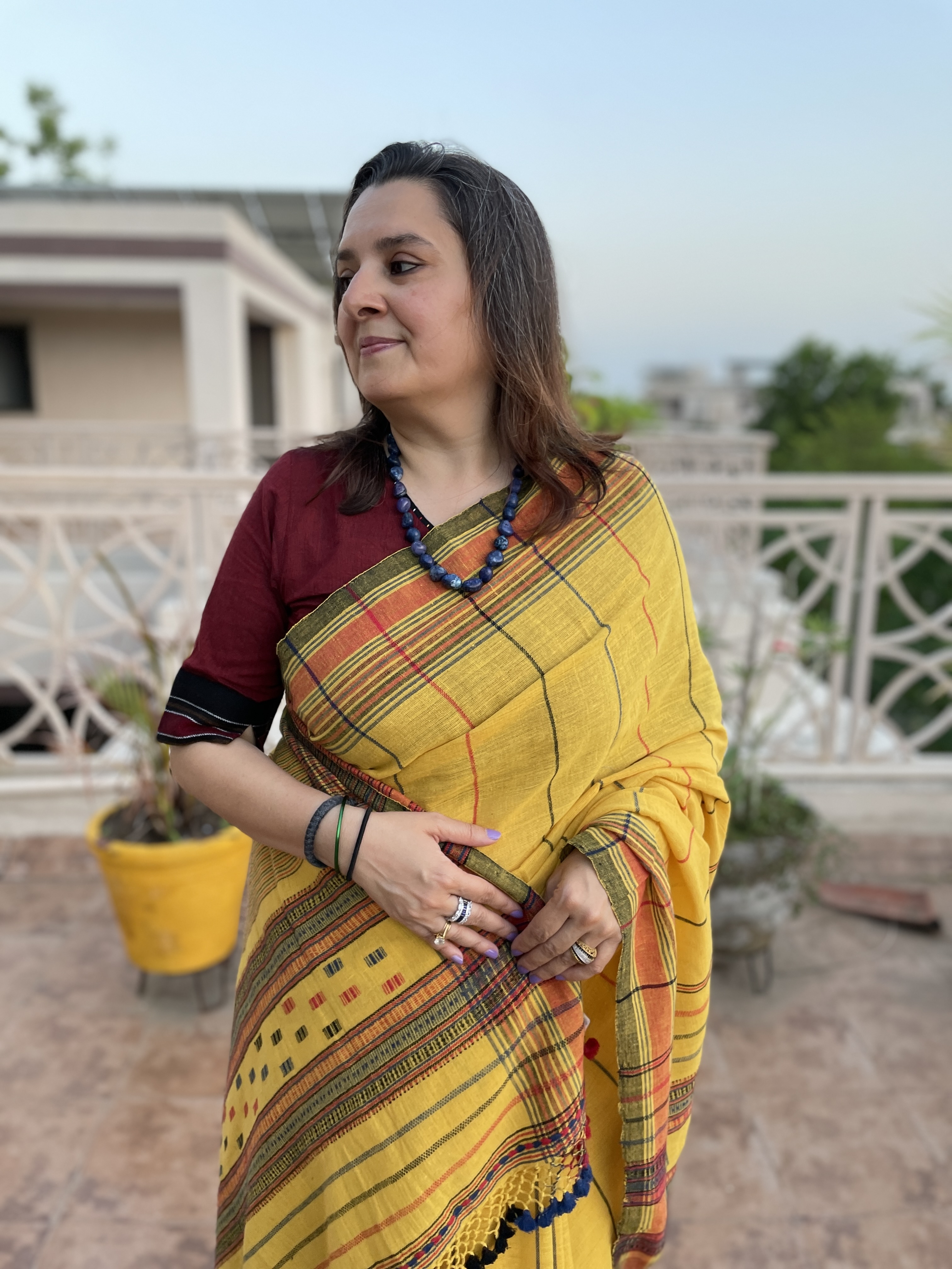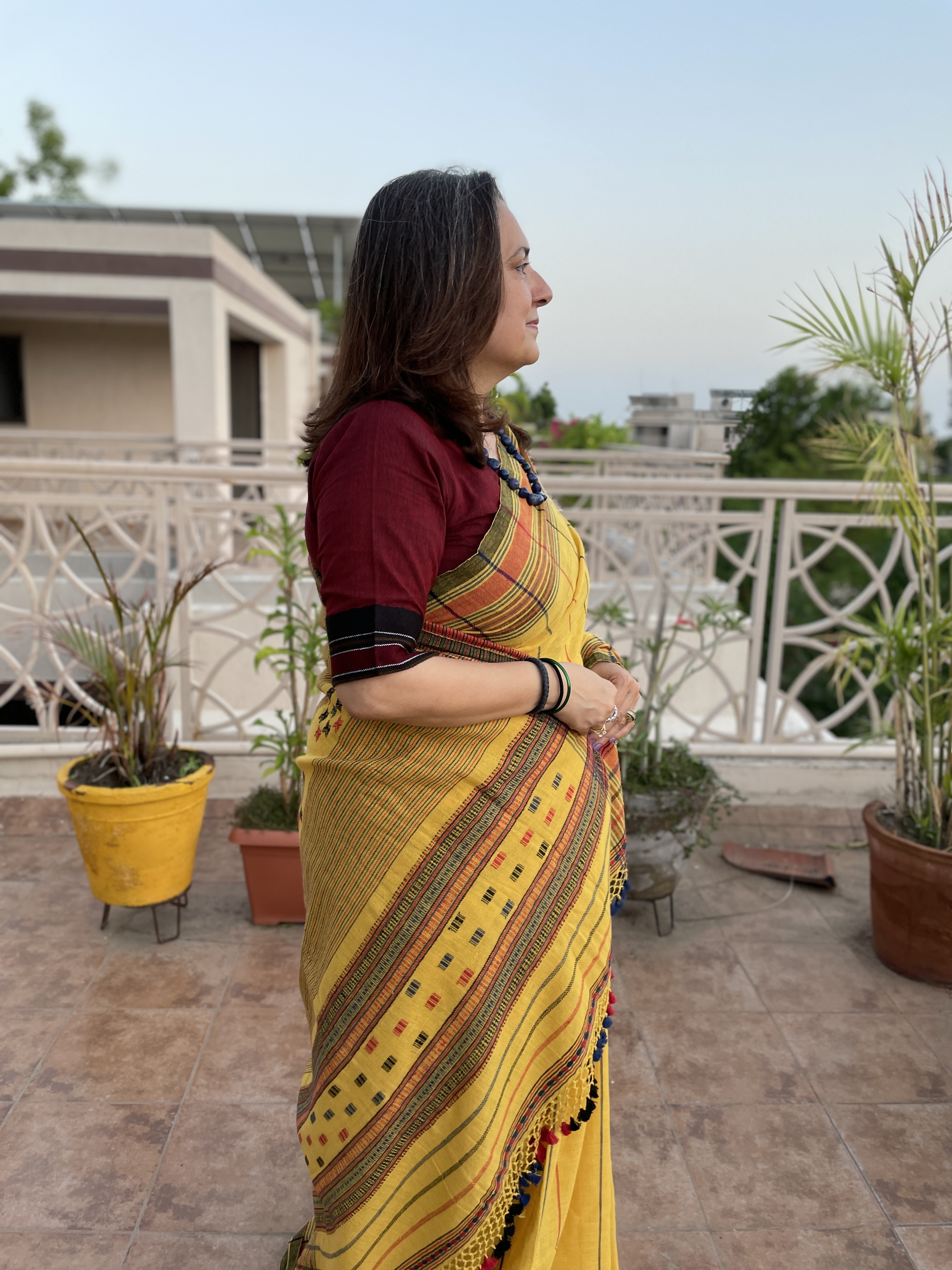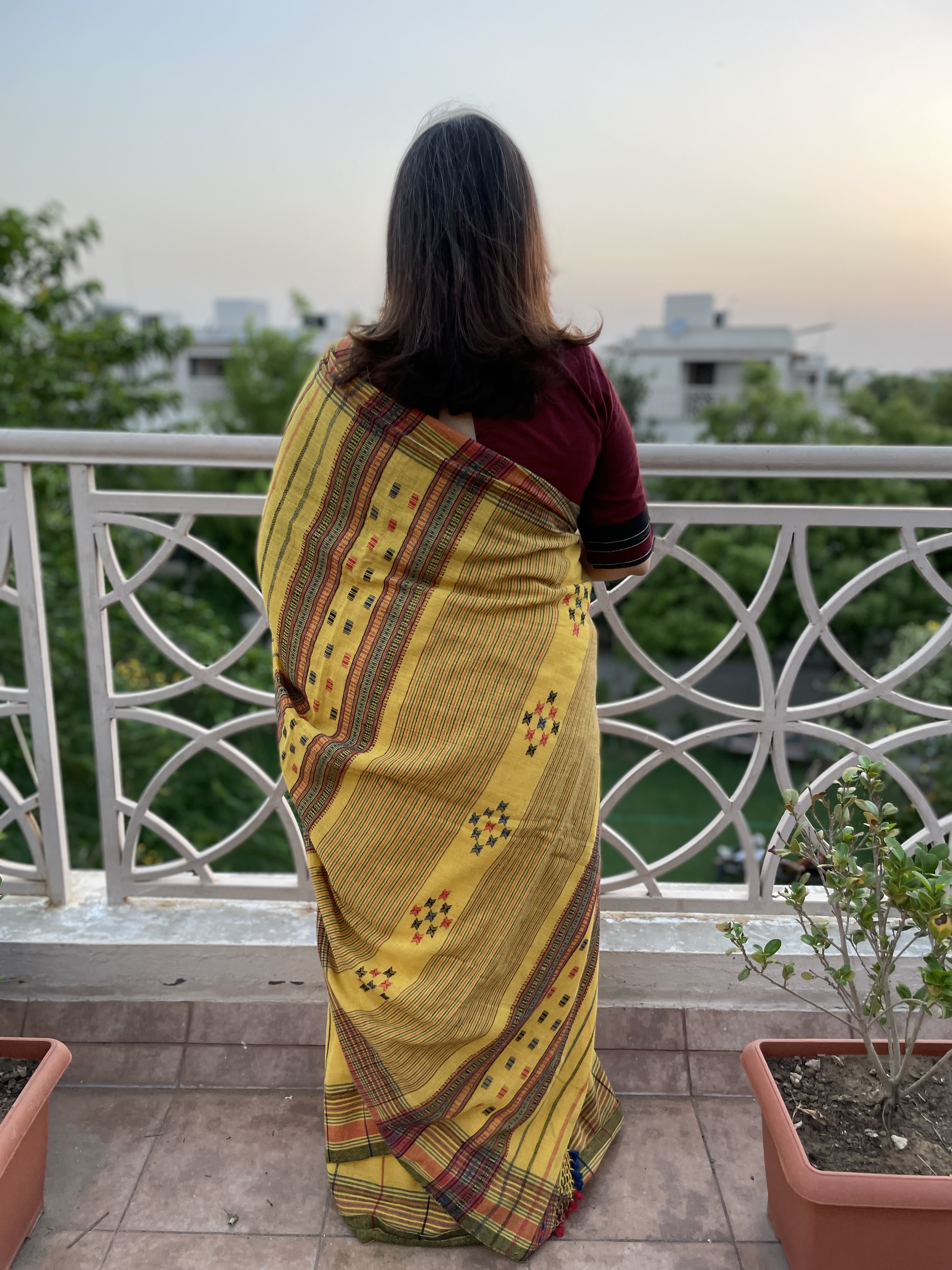 Craft: The design and pattern for the saree are decided based on the artisan's creativity or traditional motifs specific to the region.