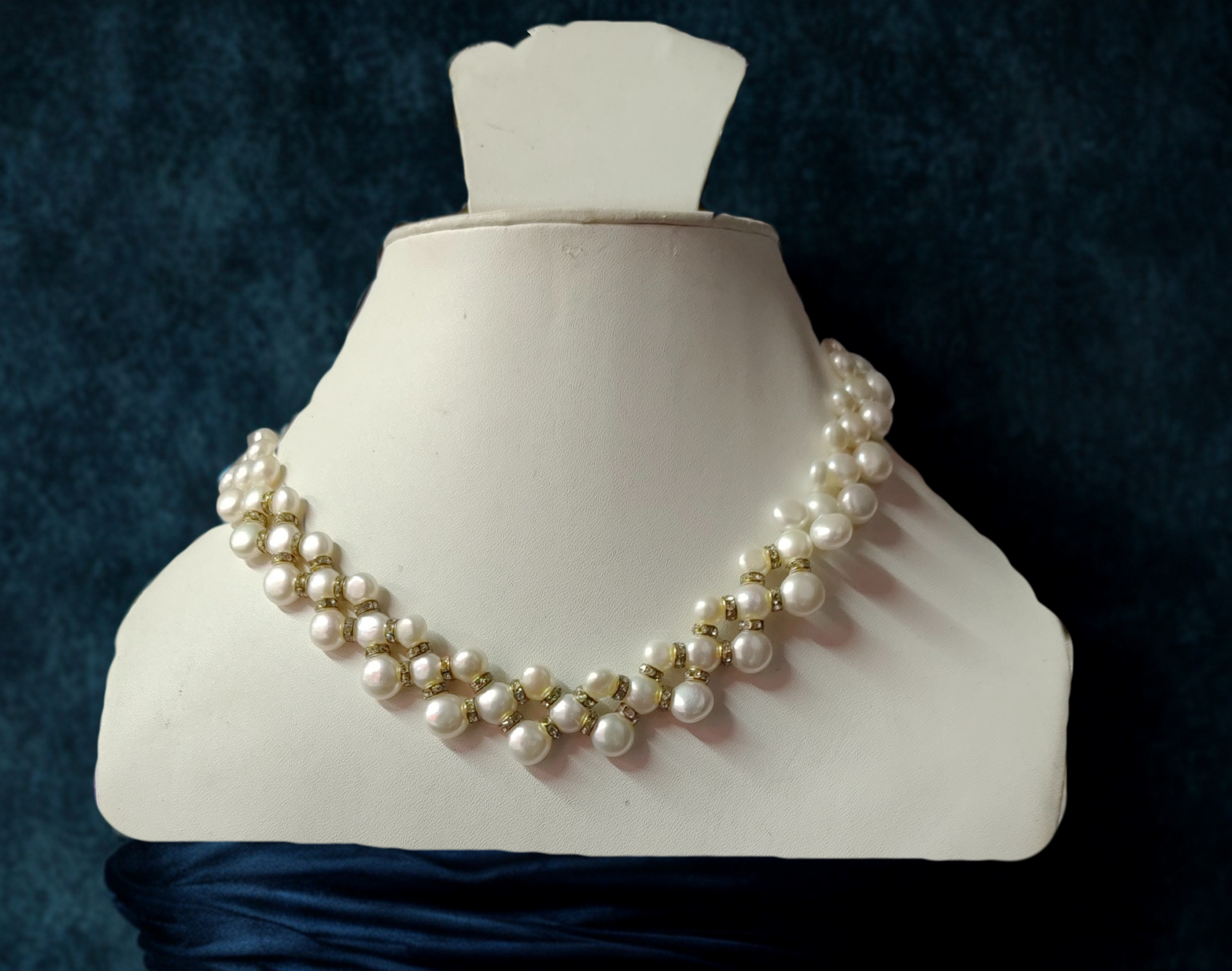 This zig-zag pearl necklace features an artistic arrangement of pearls in a stylish zig-zag pattern. Handcrafted with attention to detail, it offers a modern twist on classic pearl jewelry. Lightweight and elegant, it is perfect for casual outings, festive occasions, or as a statement accessory to elevate any outfit.